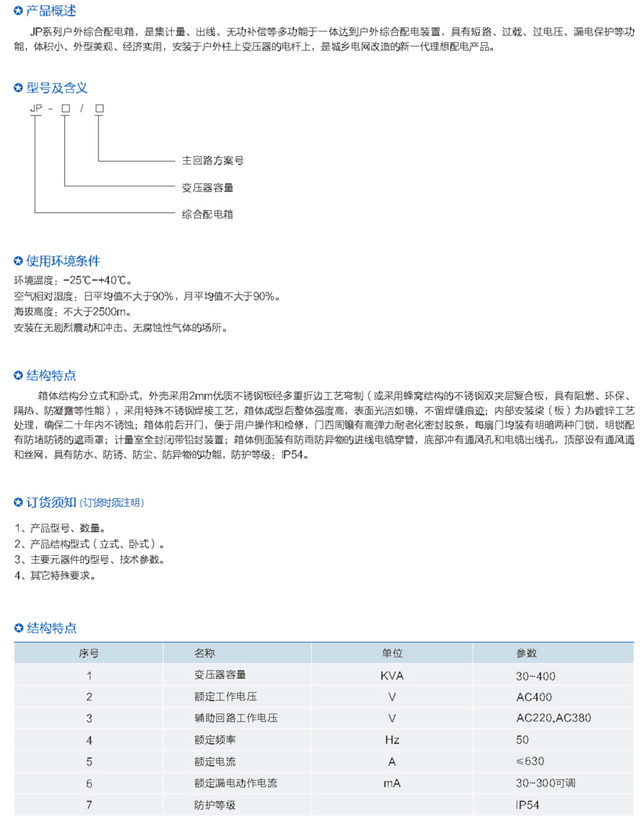 JP 系列綜合配電箱(補(bǔ)償/控制/終端/照明